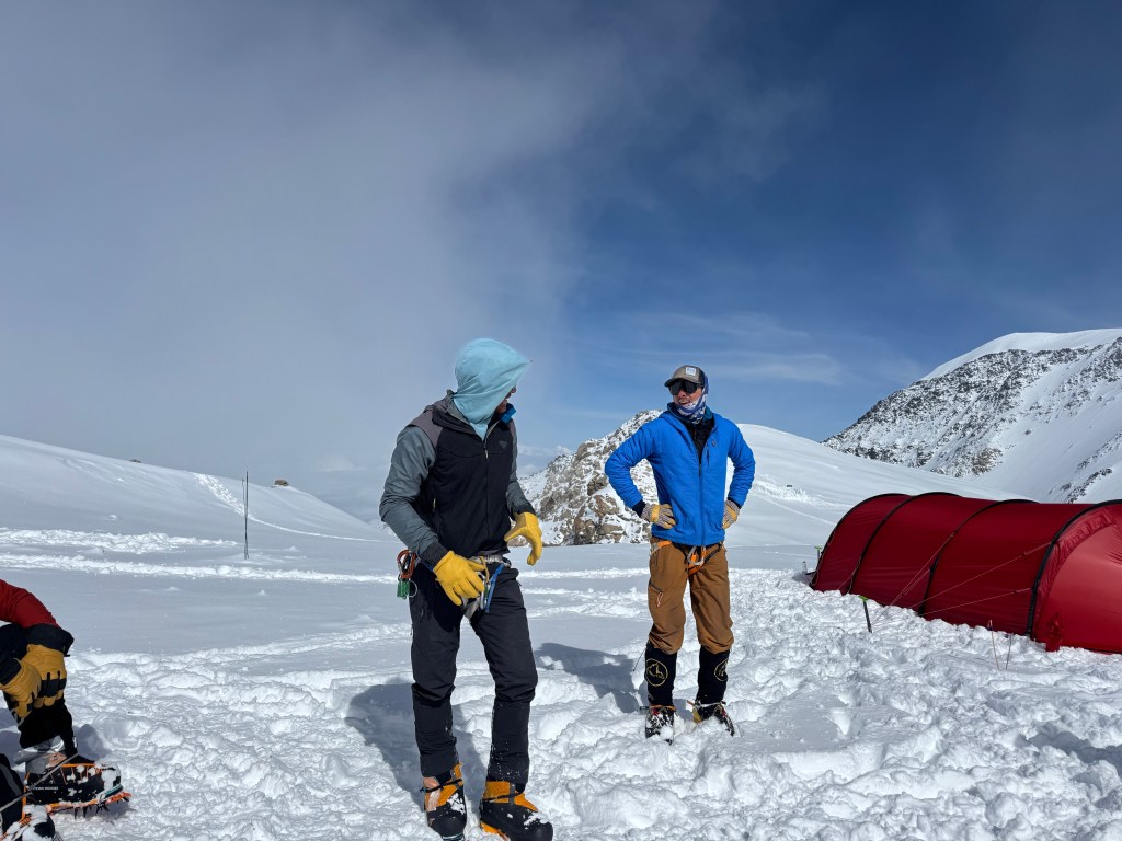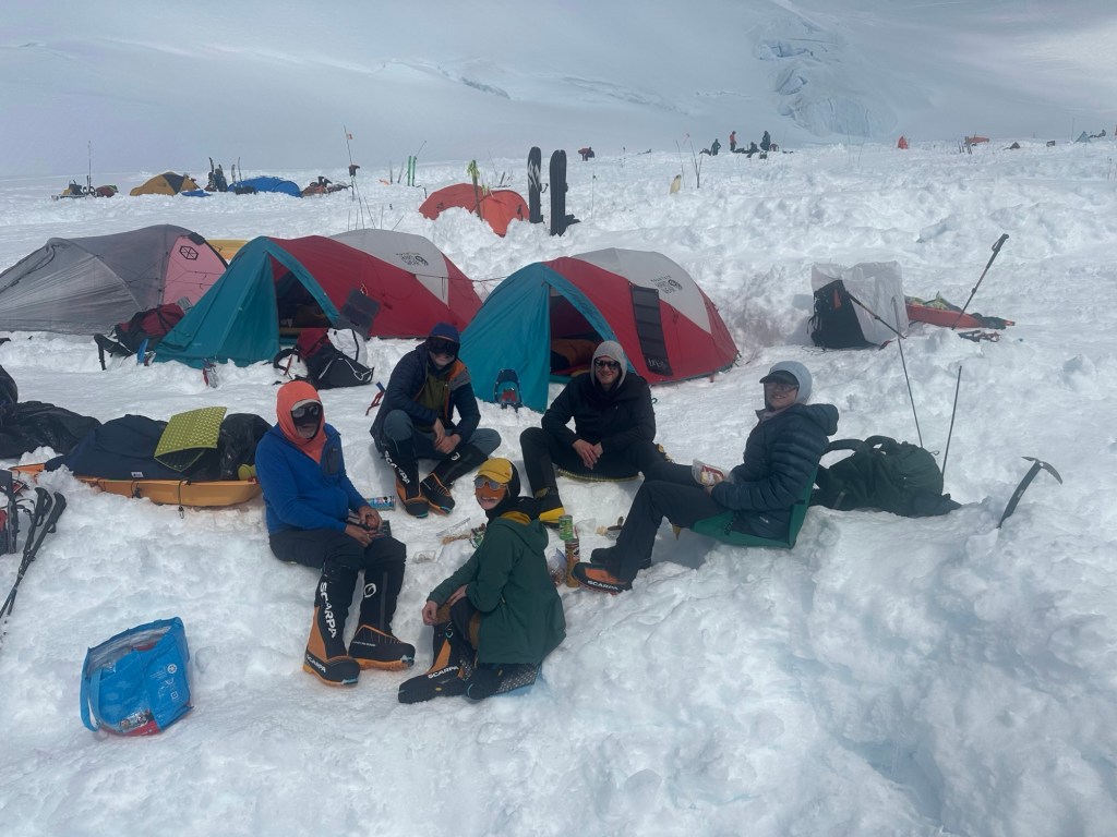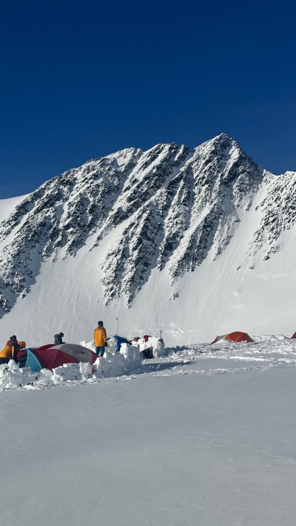 We had a group charcuterie lunch Al fresco in the afternoon, looking at these glorious mountains, getting to know each other better, and unfortunately watching the clouds gather on Mt Foraker to our south. Dominic says it’s not a great sign, but weather up here is unpredictable