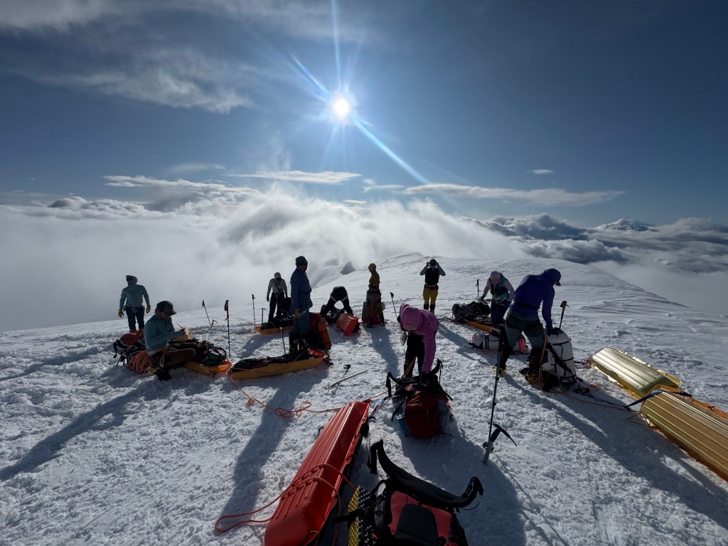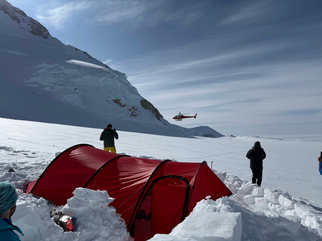 Breaking camp 1:00 amGrim!Snow turns to rainNo hopeHopeMore hope What a sky8 am and hope – it’s getting brighterMade it to basecampBack at basecamp..and the airstripIt’s a plane 🎉Ready to load Take off and goodbyeAll aboard!1955 de HavillandBack in TalkeetnaFun timeScene of the crimeThe end…….or not?