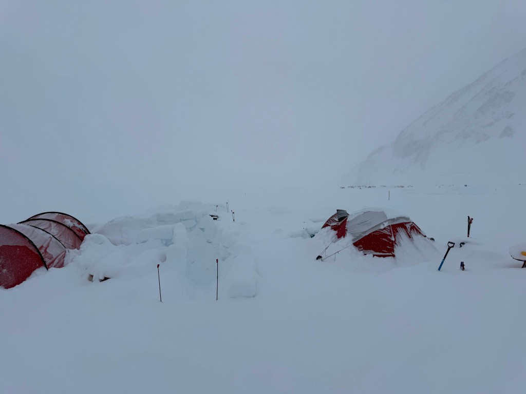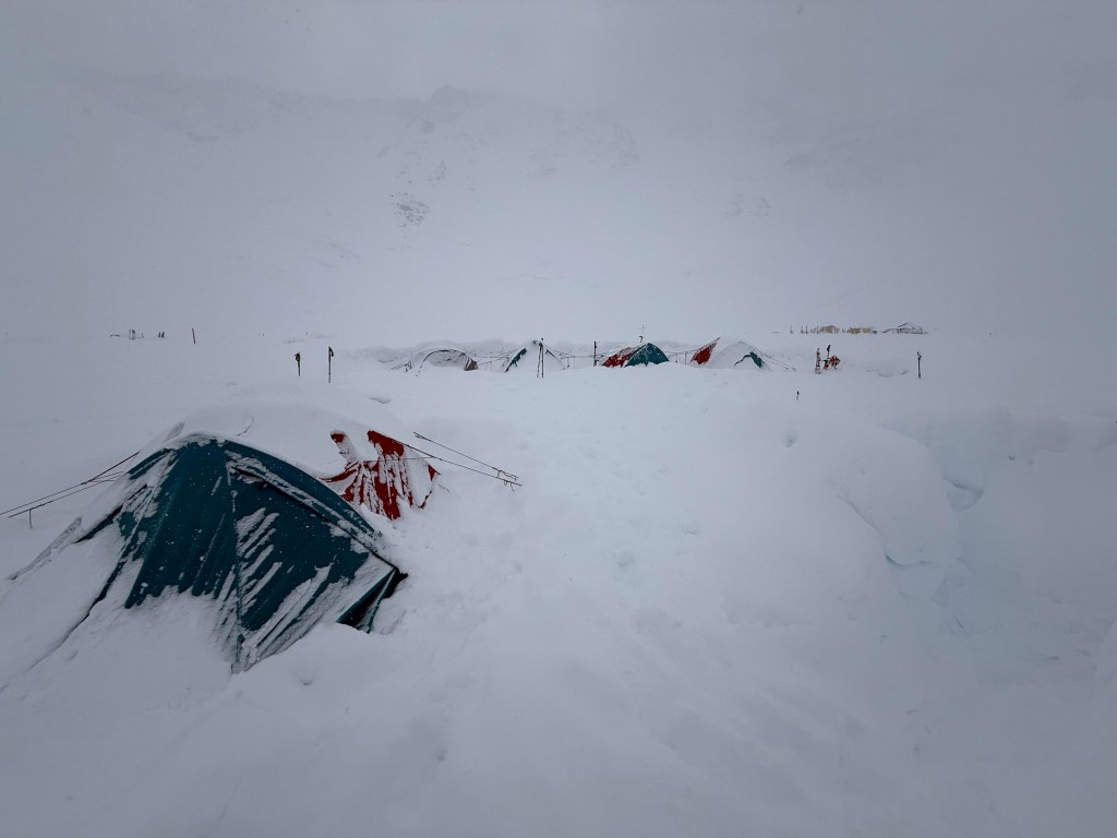 I awoke to 6-8” of snow. The expected blizzard did occur. I feel for the teams that moved to 17,000ft. I didn’t hear the blizzard. When I awoke I didn’t think I had slept that well, but seemingly I was very asleep around 1:30 when the winds hit!
