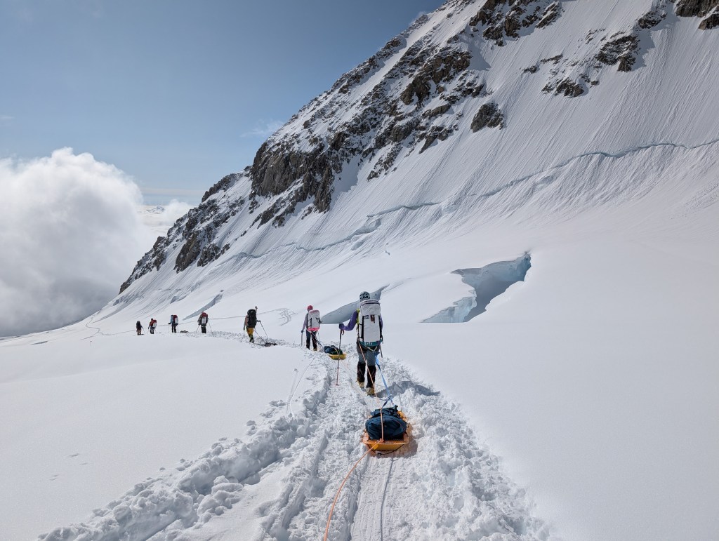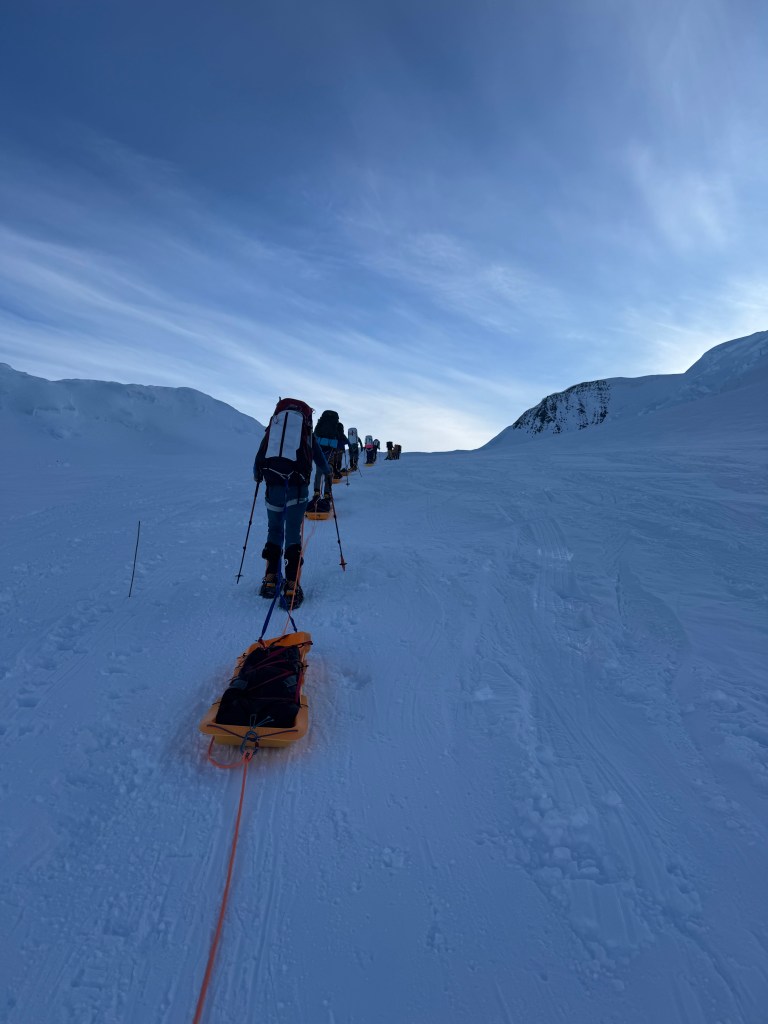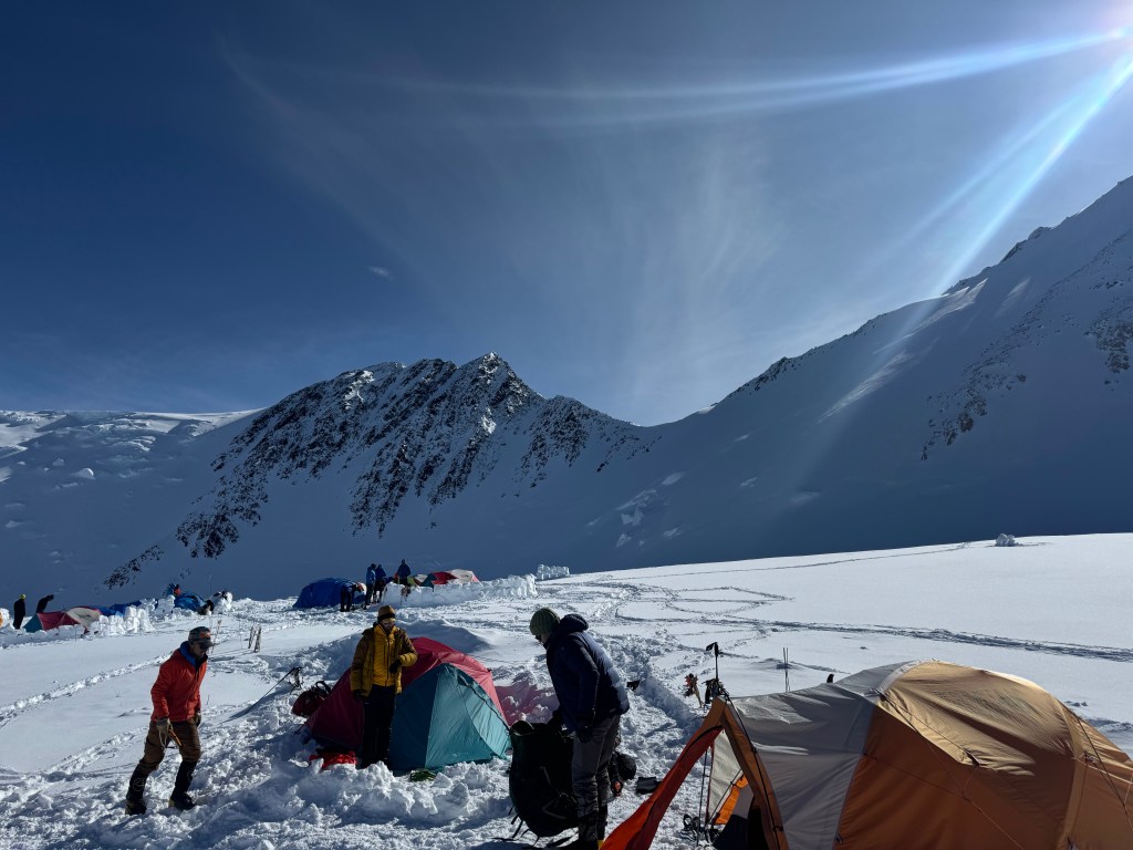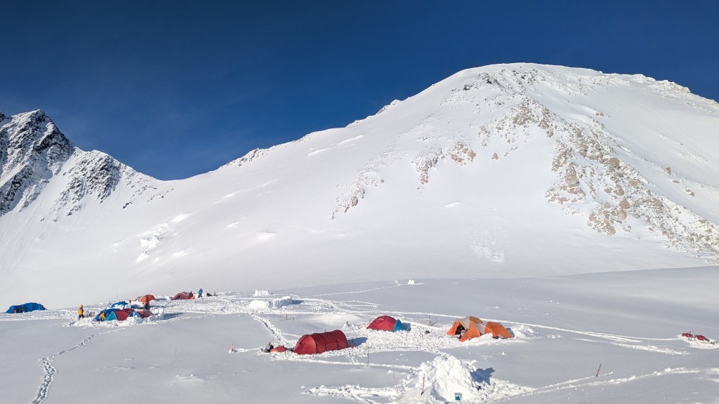 Different teams on the mountain have different strategies on assaulting Denali. Some bypass Camp 1, and stop somewhere between Camp 1 and Camp 2, and maybe not cache until above Camp 2 – so they carry all their gear in one carry. That’s hard! However, they will also need to have a different rest day strategy, to acclimatize.