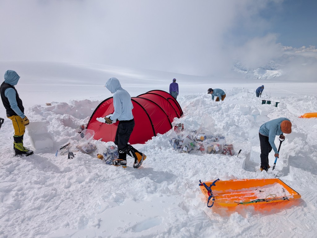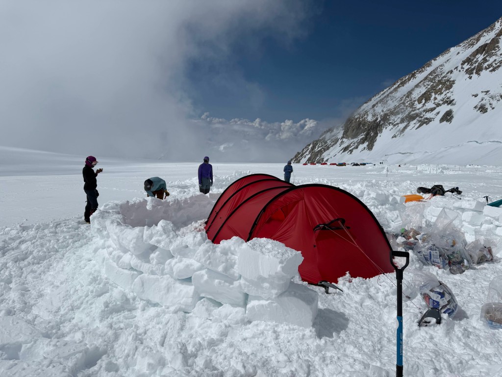 Different teams on the mountain have different strategies on assaulting Denali. Some bypass Camp 1, and stop somewhere between Camp 1 and Camp 2, and maybe not cache until above Camp 2 – so they carry all their gear in one carry. That’s hard! However, they will also need to have a different rest day strategy, to acclimatize.