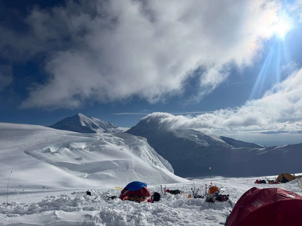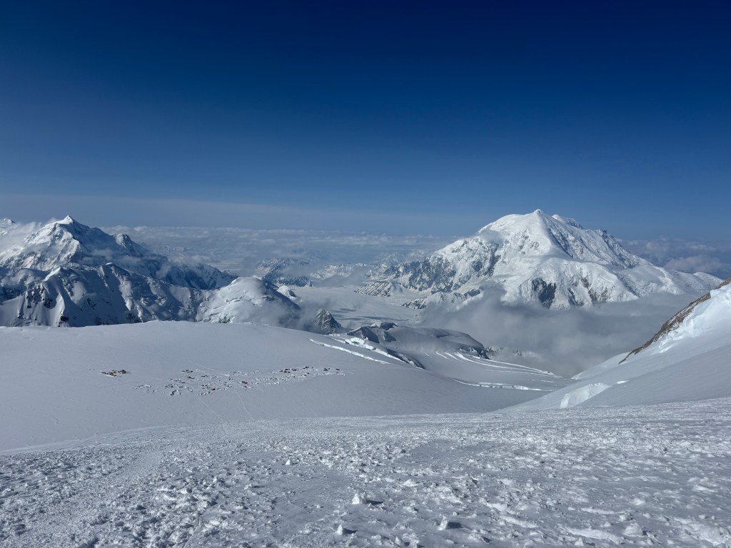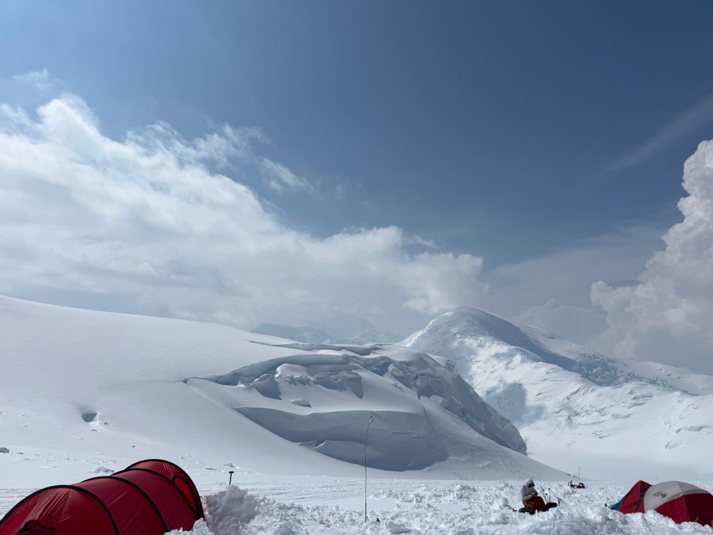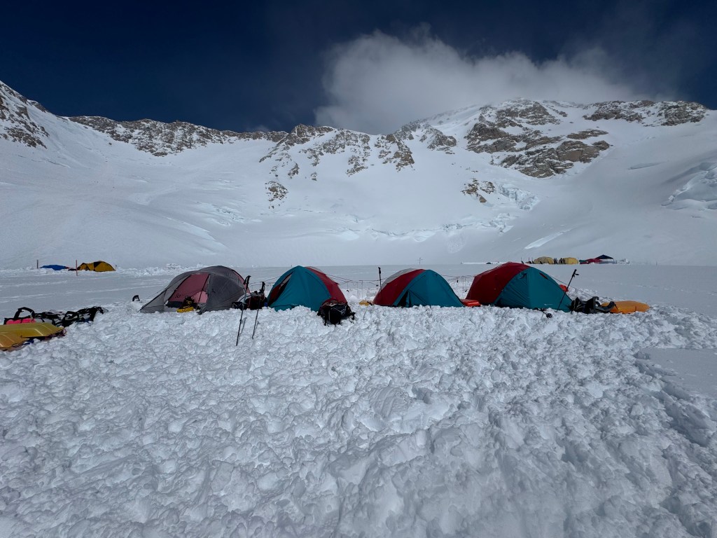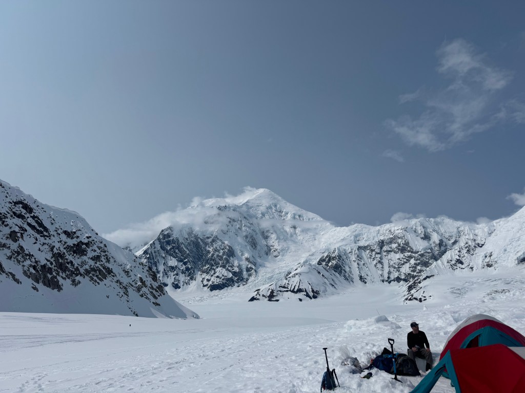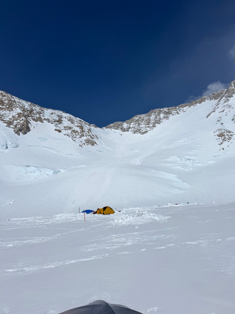 Camp 1 is beautiful. An amphitheater of the most beautiful, pristine white mountains. Denali was clear all day. Francis, Hunter, etc, all looking majestic.