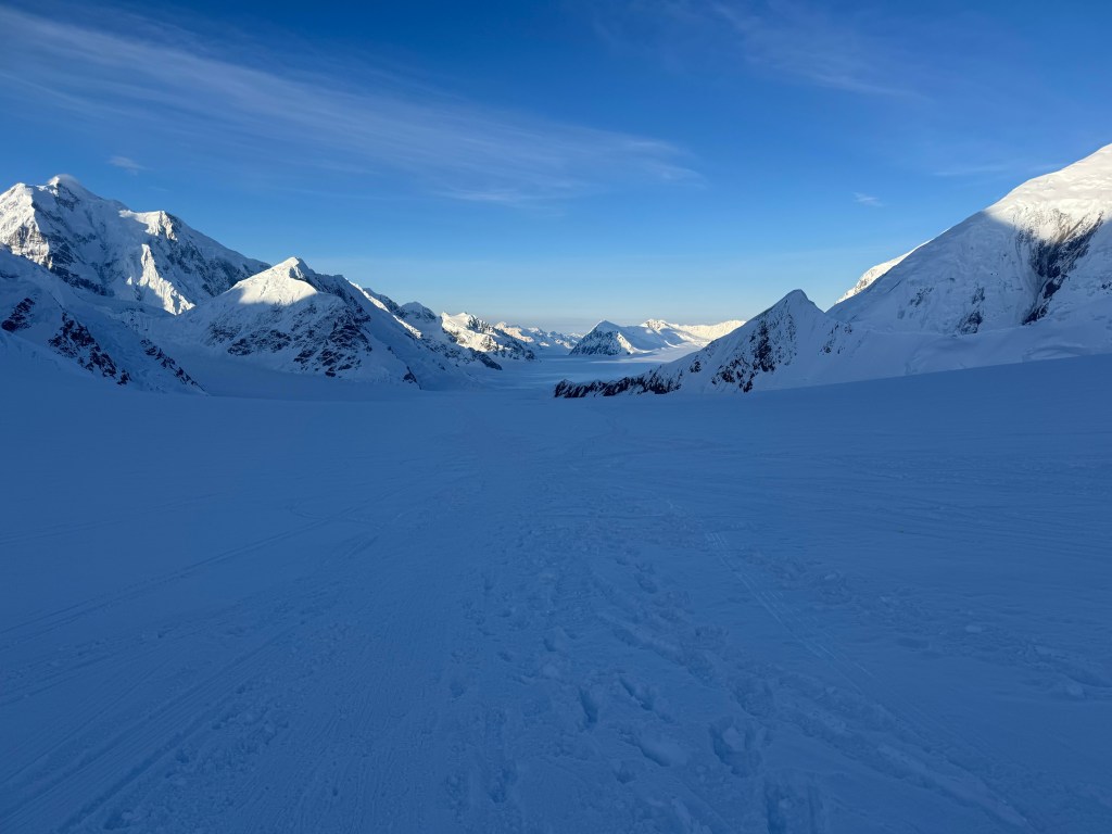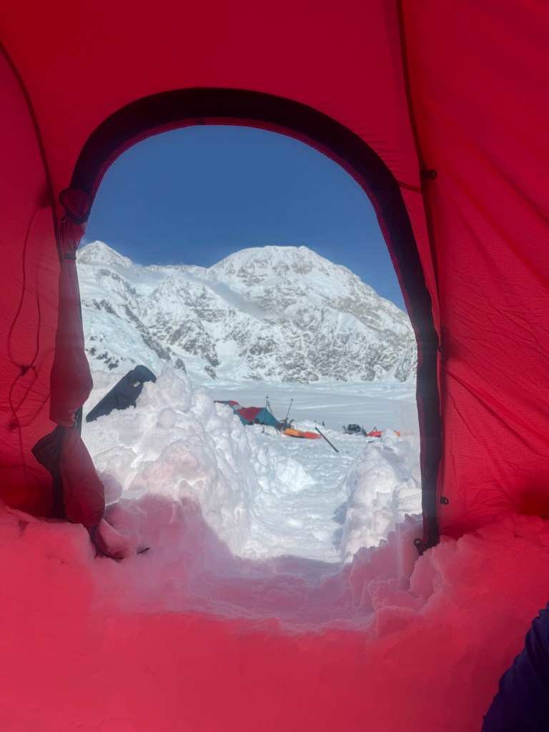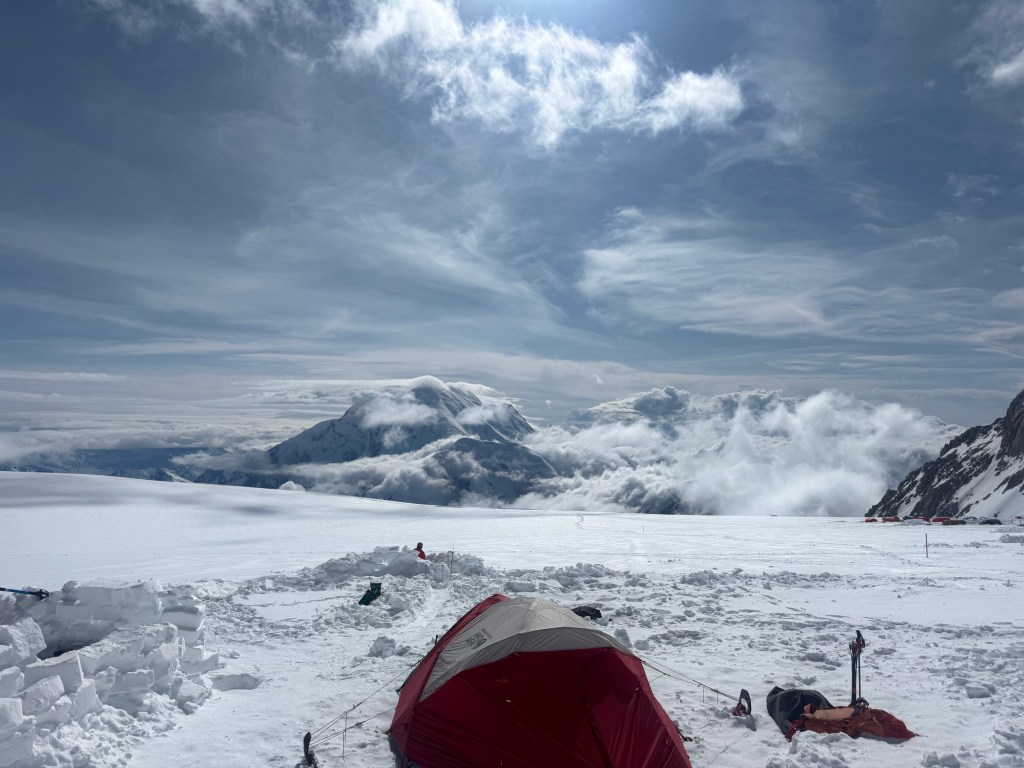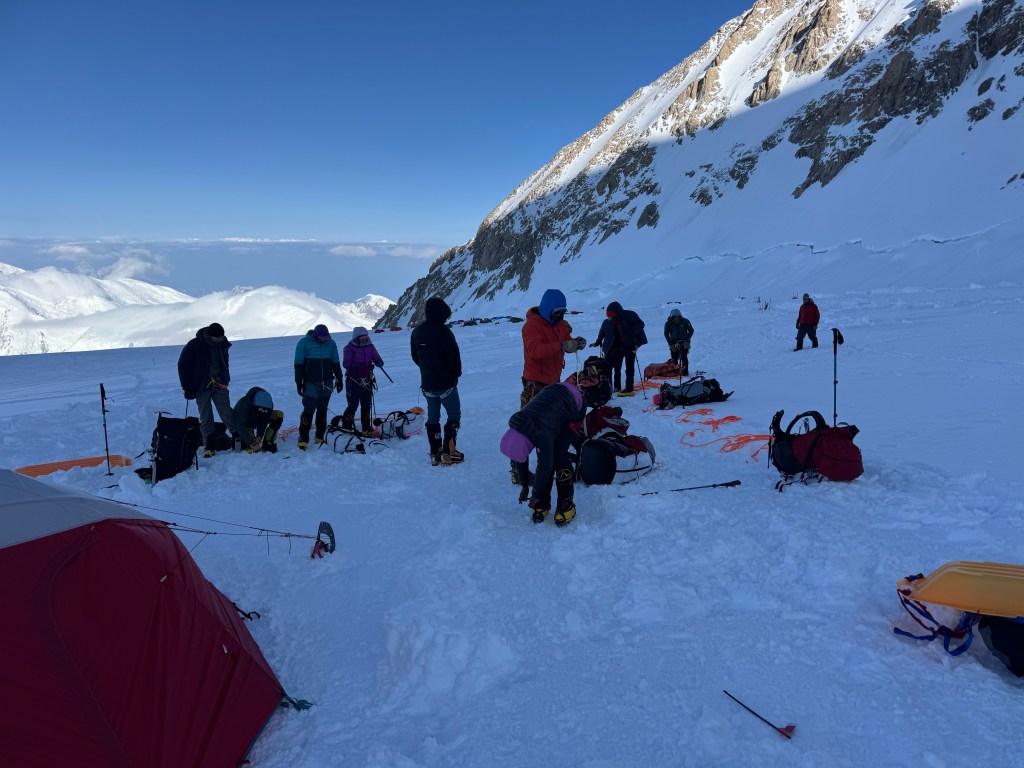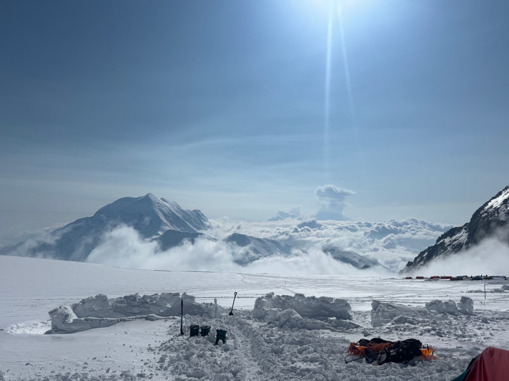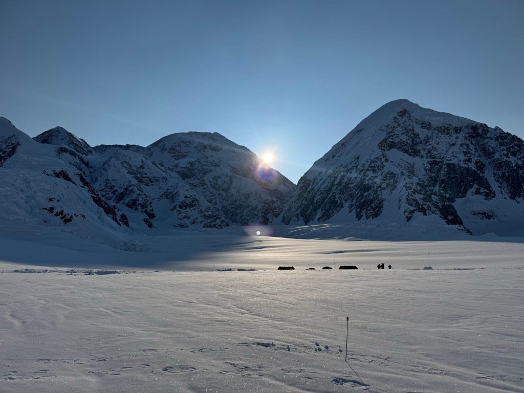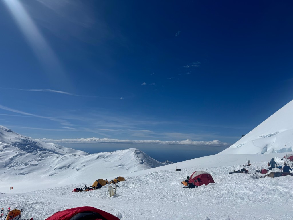 Camp 1 is beautiful. An amphitheater of the most beautiful, pristine white mountains. Denali was clear all day. Francis, Hunter, etc, all looking majestic.