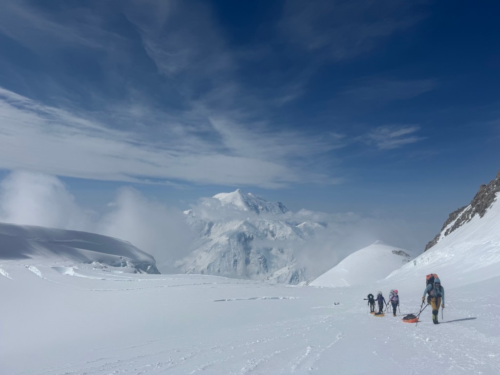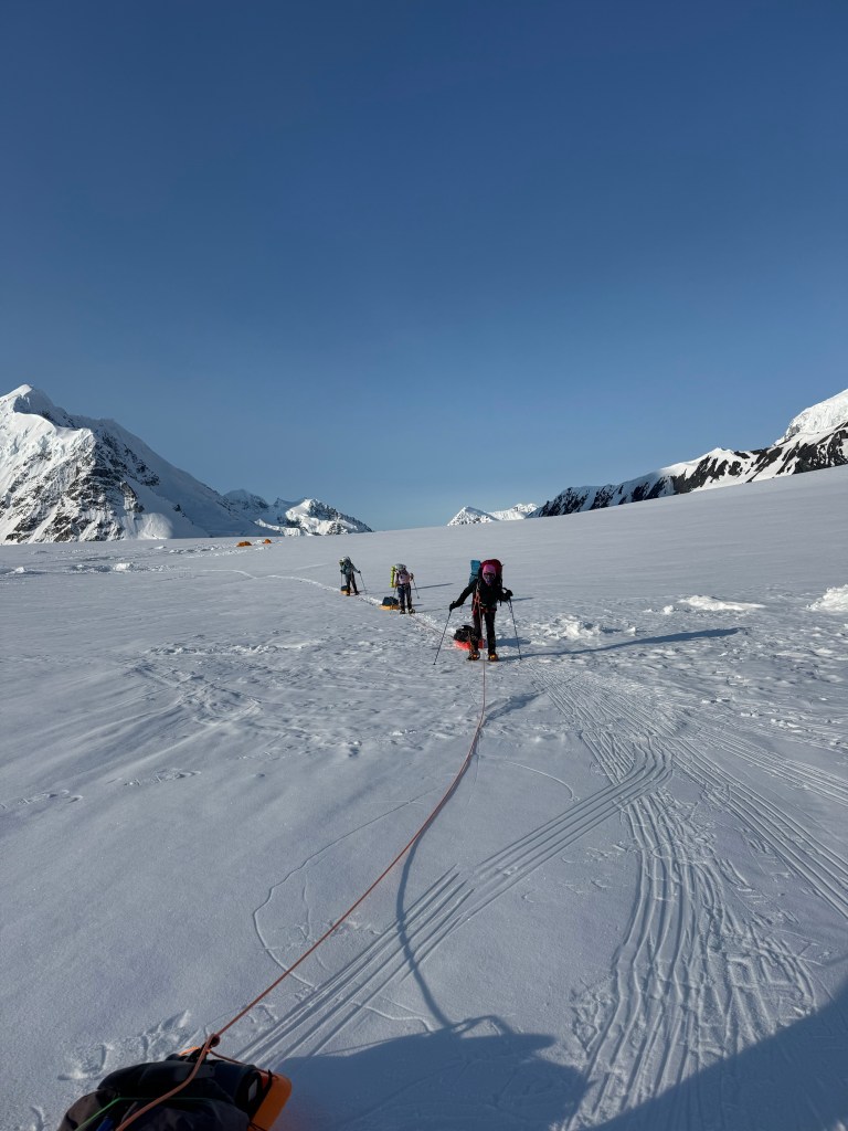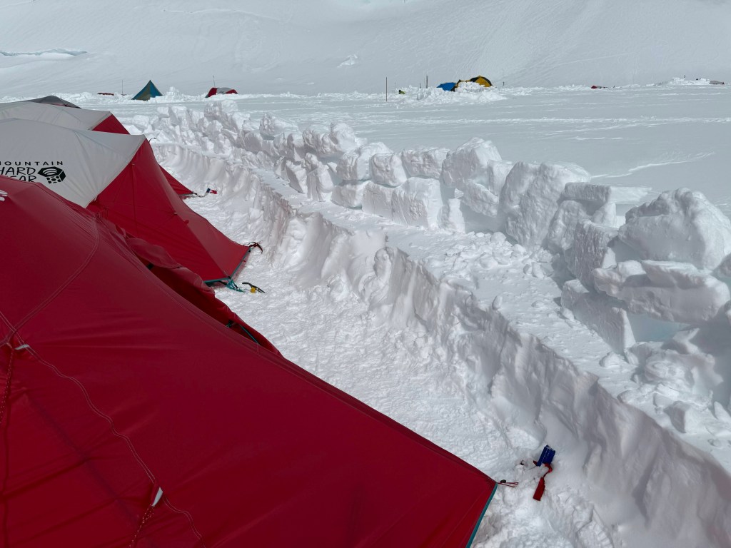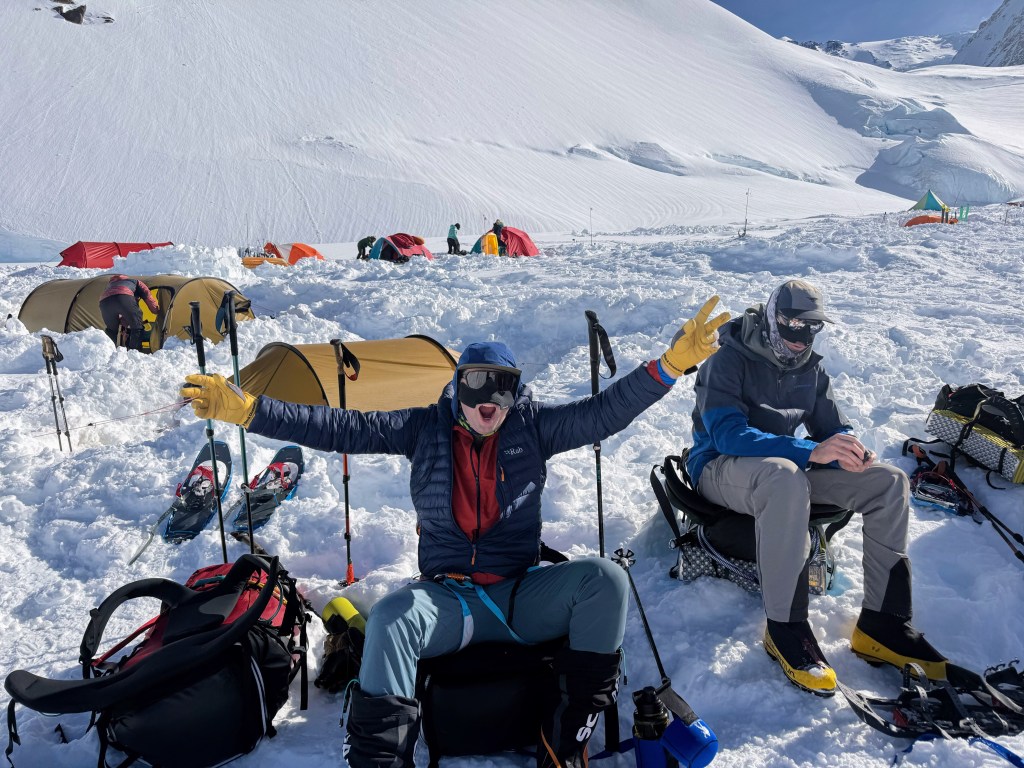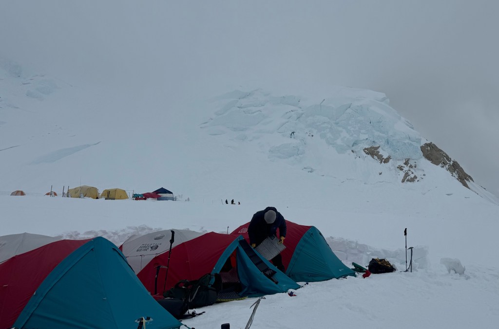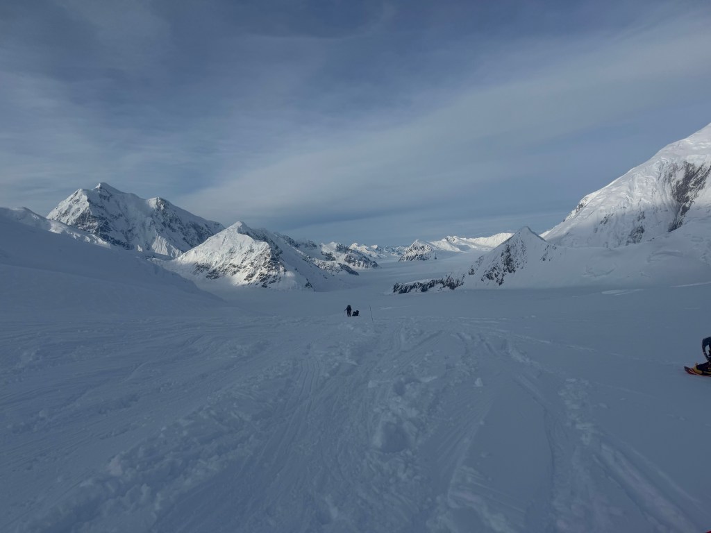 Camp 1 is beautiful. An amphitheater of the most beautiful, pristine white mountains. Denali was clear all day. Francis, Hunter, etc, all looking majestic.