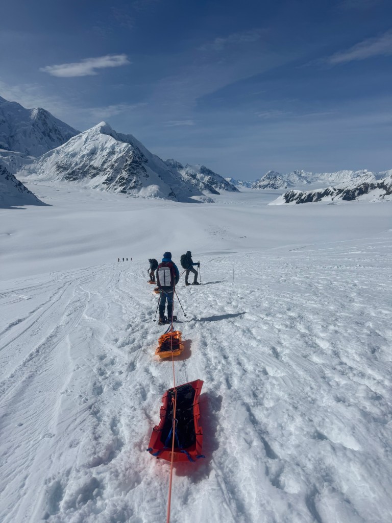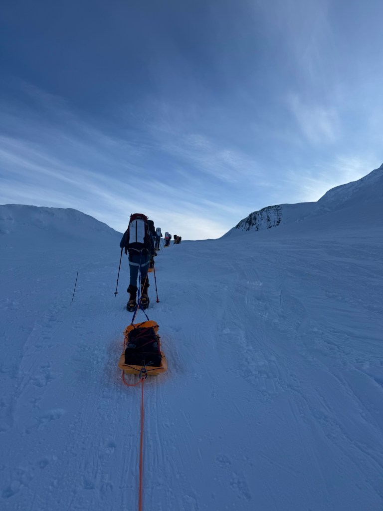 After we turned around it was near empty backpacks, and empty sleds. Controlling the sleds, as we quickly made our return to Camp was “fun”.