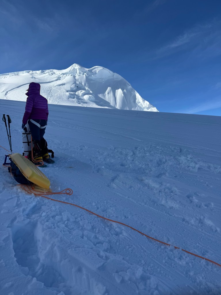 Today was a supposed “rest day”. We slept in ‘til 5:30am, which was welcome after some of our earlier starts. We were now at a height where snow melt and crevasse bridges was less of a concern, meaning we did not need to travel through the night. On the other hand the heat of the day was significant, despite the temp being in the 10’s or 20’s, so moving before it got too hot when we had full sun in the sky was important.